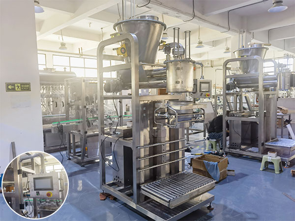 1、智能控制:全自動立式稱重包裝機擁有超大觸摸屏操作,參數可預設存儲,支持多配方切換,操作簡便,一鍵式設定高速運動,提高生產效率。