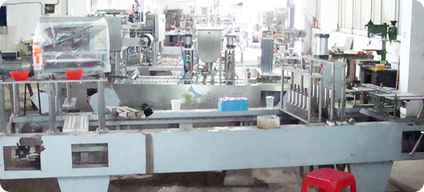 2、采用注塞缸自動充填封口灌裝、紫外線殺菌、機械手吸片膜,(灌裝計量精確,無噴濺,無泄漏);