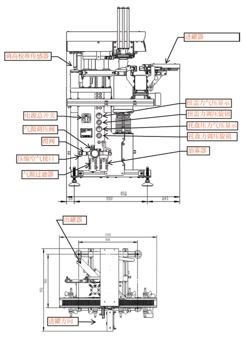 全自動醬料真空旋蓋機包括:進出罐輸送、進罐器、出罐器、真空室、托爪、配蓋器、旋蓋頭等主要部件。
